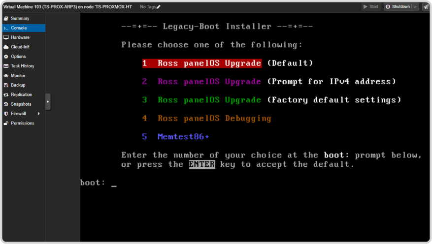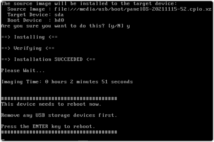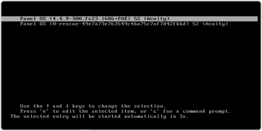 Press enter at the prompt to boot up with the selected panelOS or wait for the system to boot automatically.
