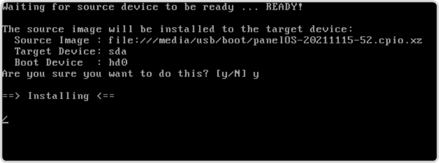 Type y to proceed with the installation of the OS on the target drive.