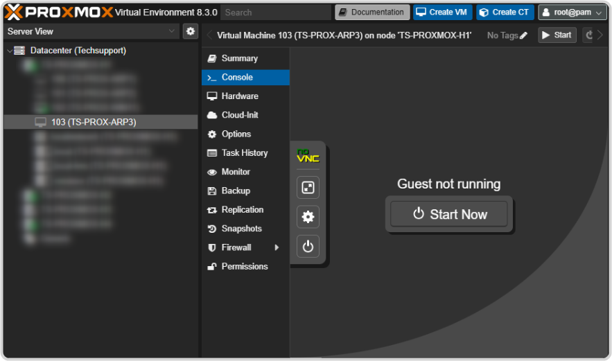 - Click Start Now to start the new VM and install the panelOS on it.