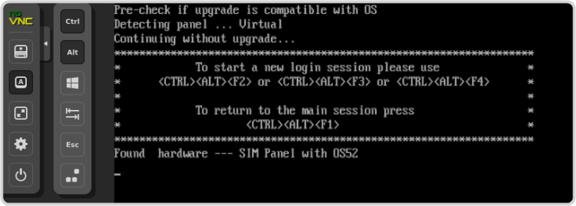With the VM still running, click the A button on the noVNS dialog and click Ctrl and Alt