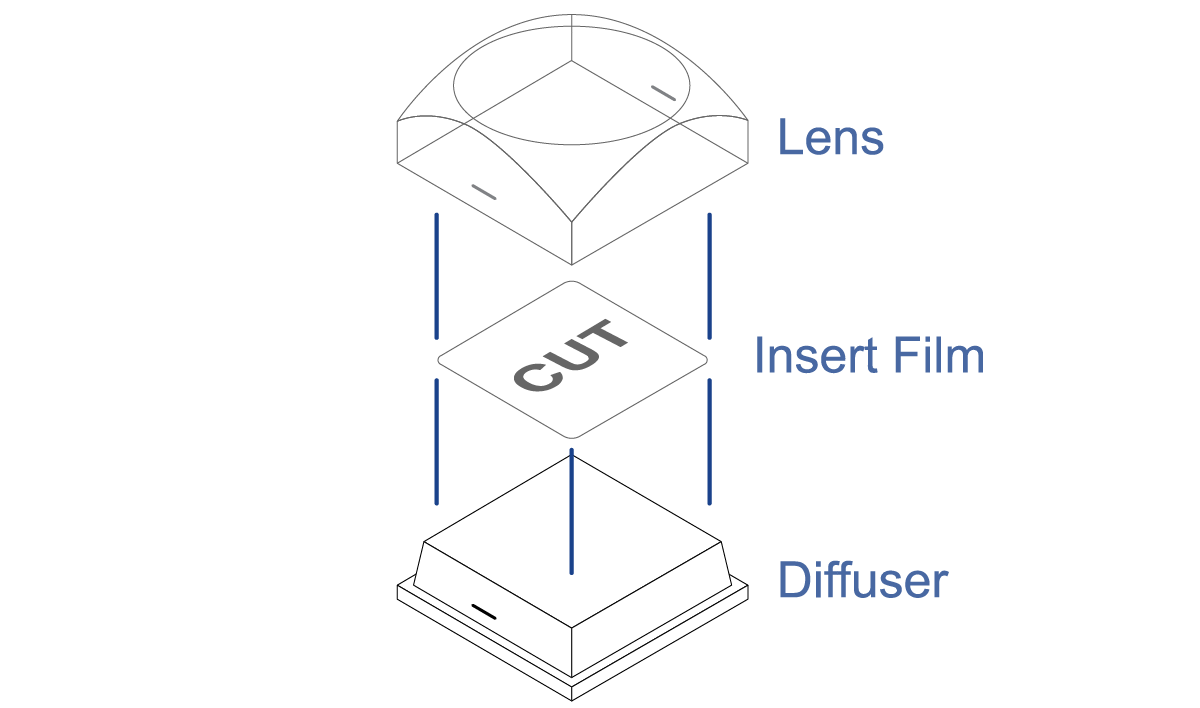 Place the Insert Film into the Lens so the readable side is facing up. The notches on the sides of the Lens must be at the sides of the text on the Insert Film.