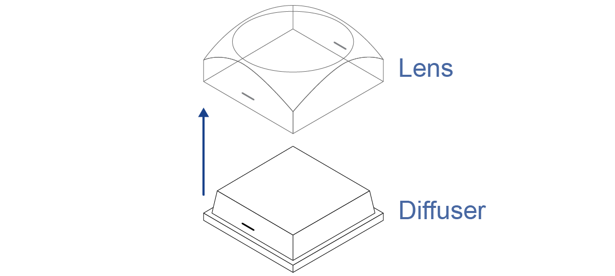- Aligning the notches on the sides of the Lens and Diffuser, press the Lens and Diffuser together until they click.