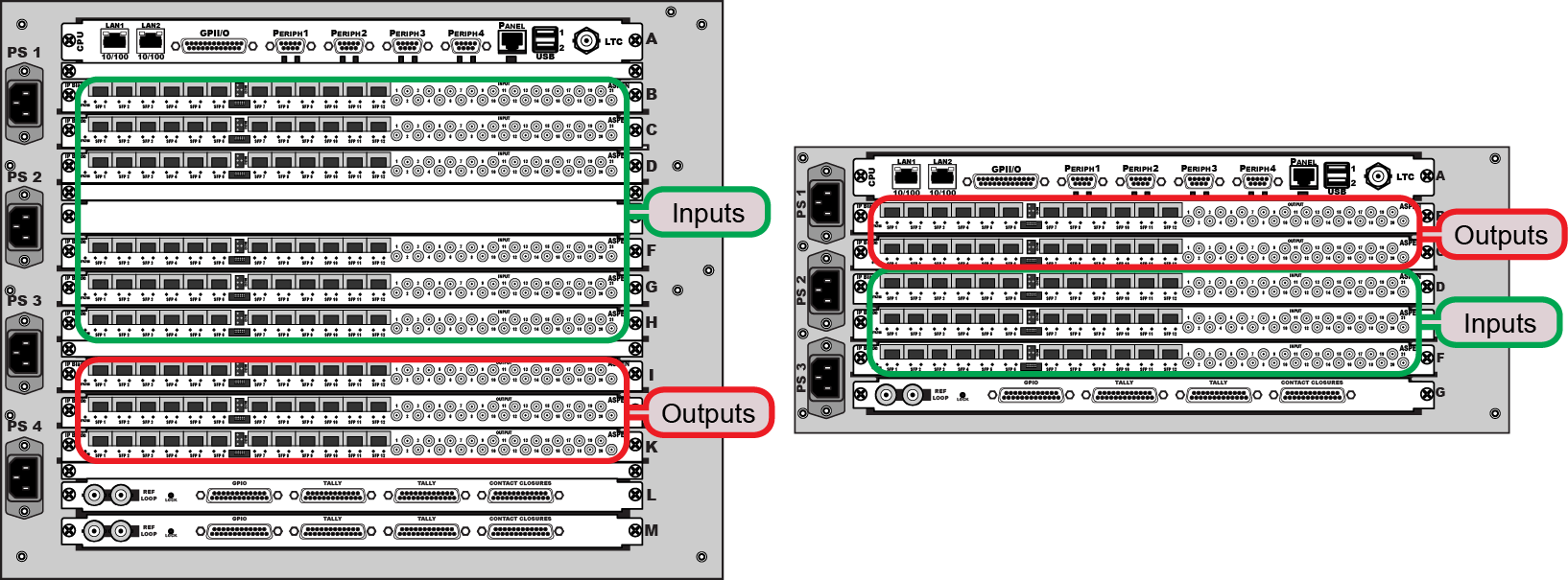 Note: Due to power requirements, using optical SFPs reduces the maximum number of Evertz® IP Input