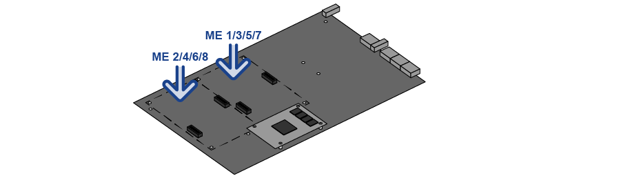 Tip: If the 3G Video Processor board is from Slot 1, the location at the front of the board is for ME 2 and the location at the back (towards the midplane) is for ME 1.