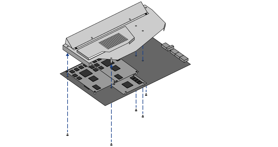 Remove the five (5) screws securing the air deflector to the board and remove the air deflector.