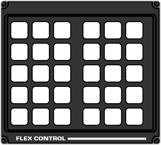 The Flex Control area is made up of a user selectable buttons, much like on the panel row, that can be have various functions assigned to them. The functions that can be assigned to the buttons depends on the switcher the panel is connected to.