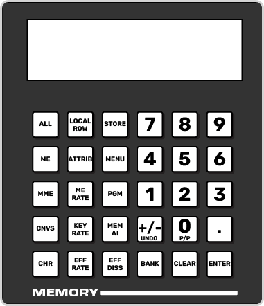 | MME | Select only specific MiniME™ inclusions for the memory action. Press and hold MME and press the number buttons to add or remove an element from the inclusions for the memory store or recall. The inclusions are shown on the display. |