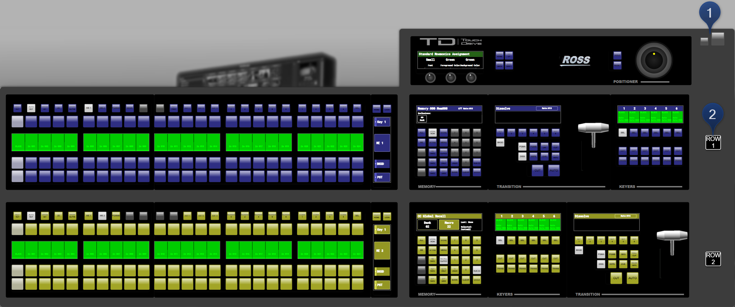 Right-click on the ROW X button to assign the panel row to a different switcher row.