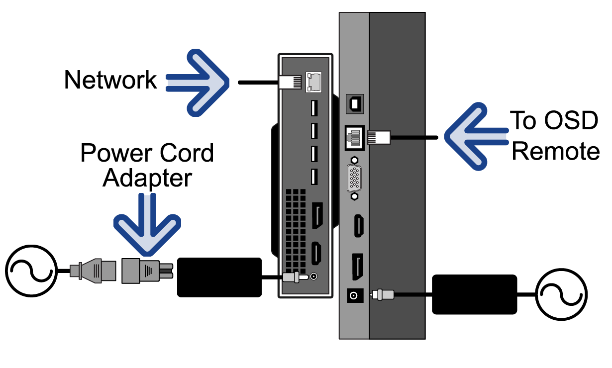 The power cord adapter is needed to plug the provided line cord into the power supply for the PC of the Menu Display.