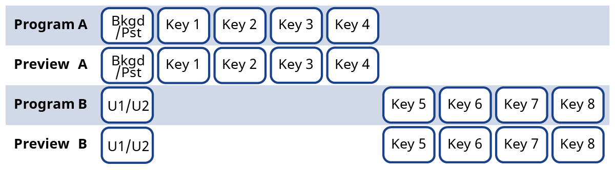 • Sources selected on the background and preset buses of the A-side or B-side are independent of each other.