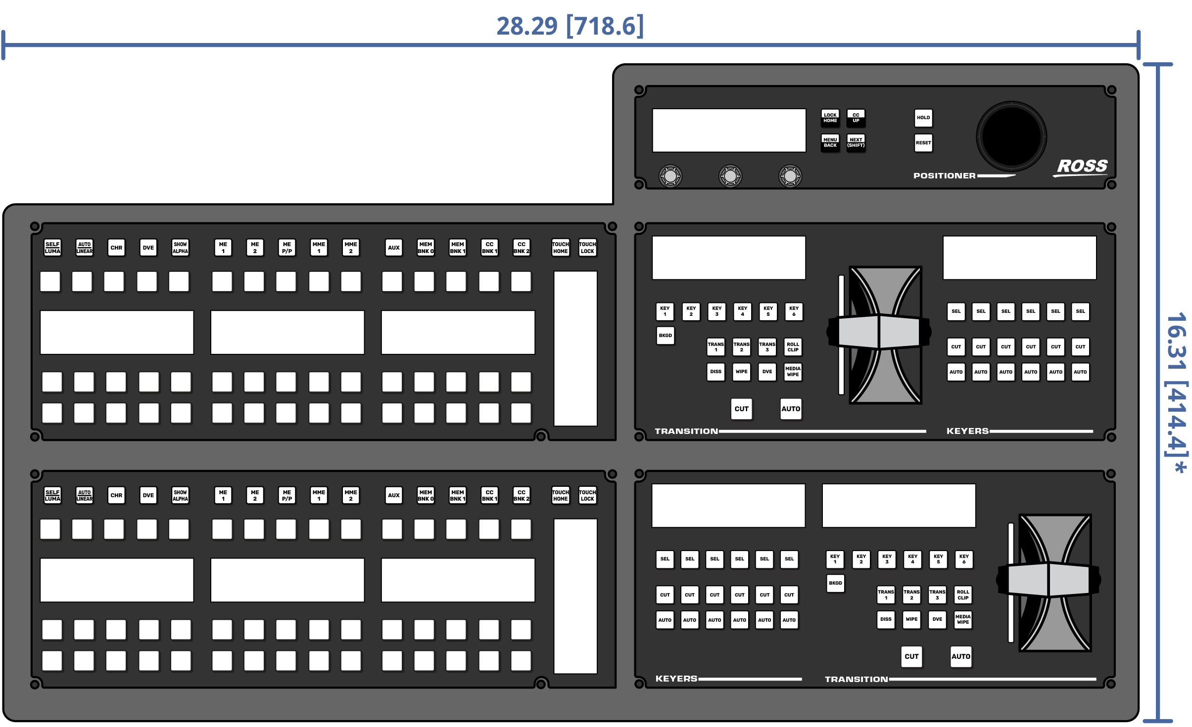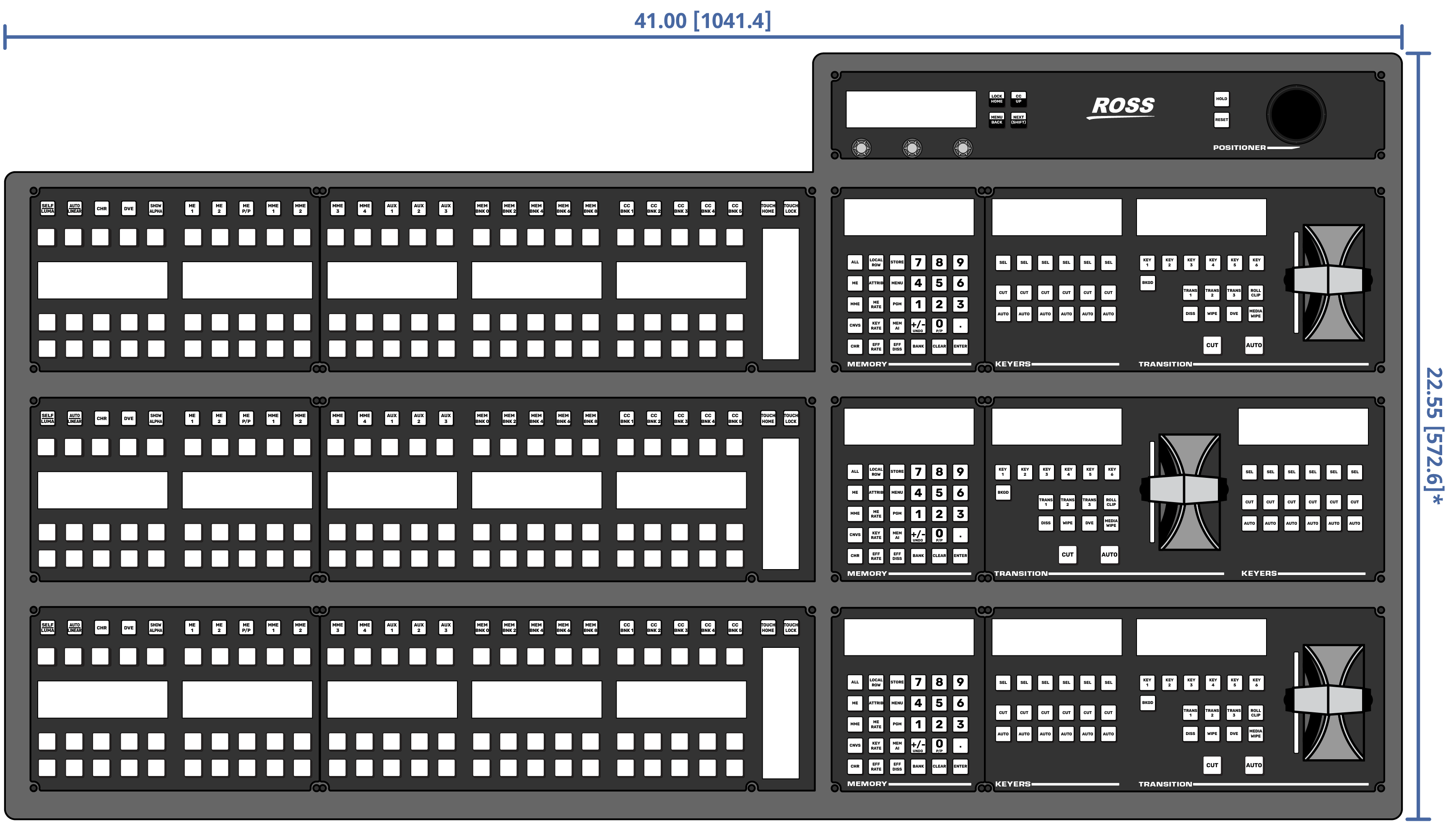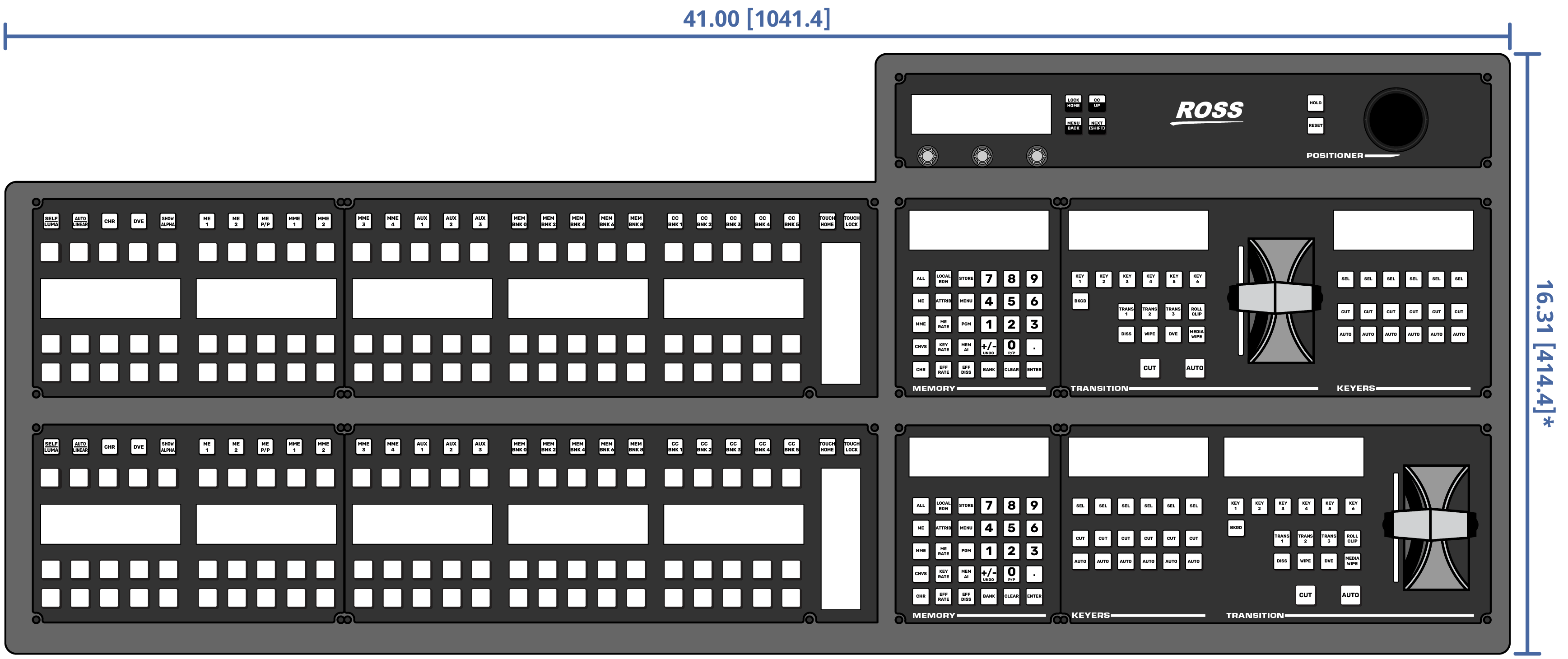 Important: These dimensions are provided as a guide only. Scale DXF/CAD drawings of the control panels are available from the Ross Video website.