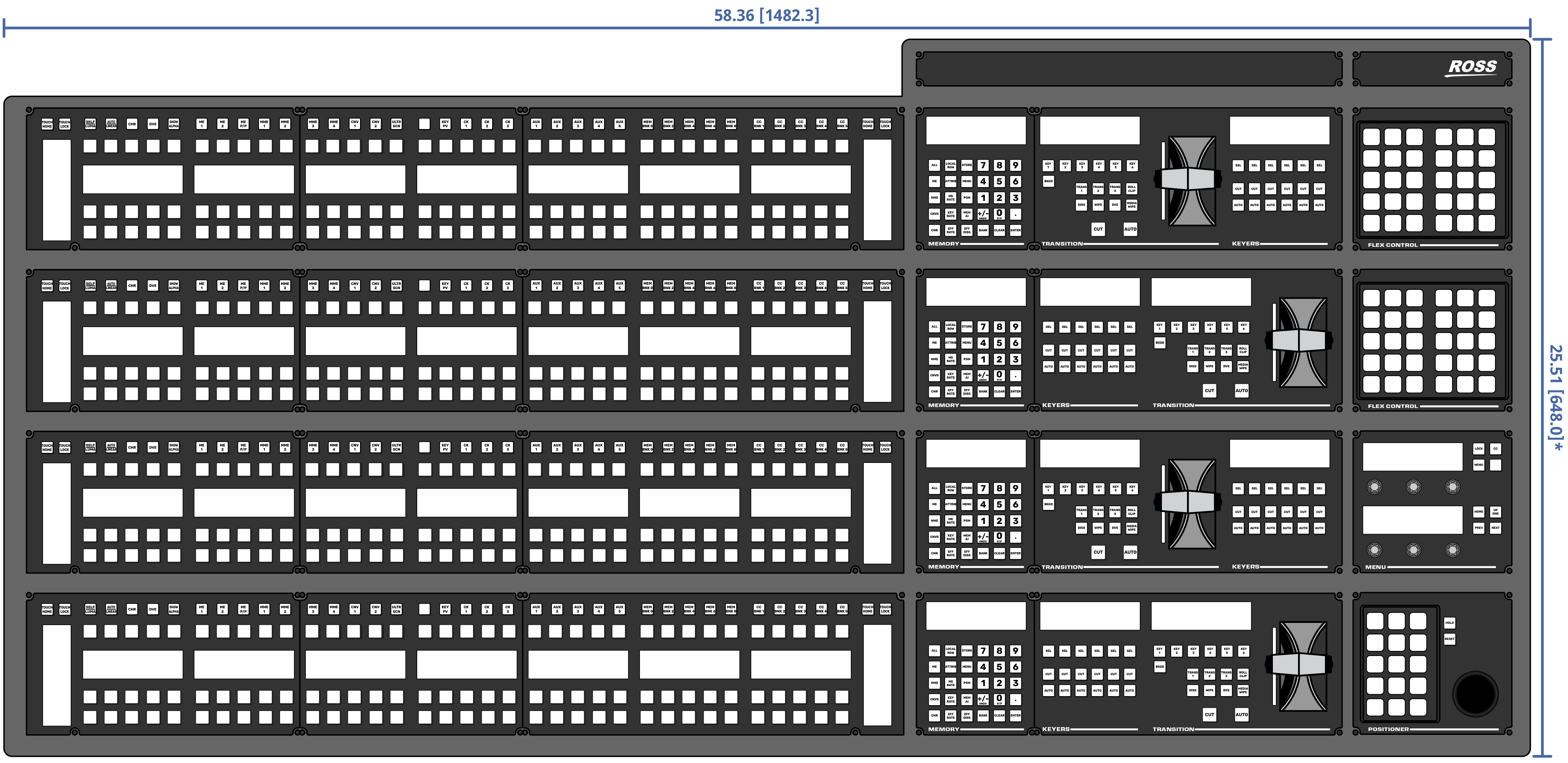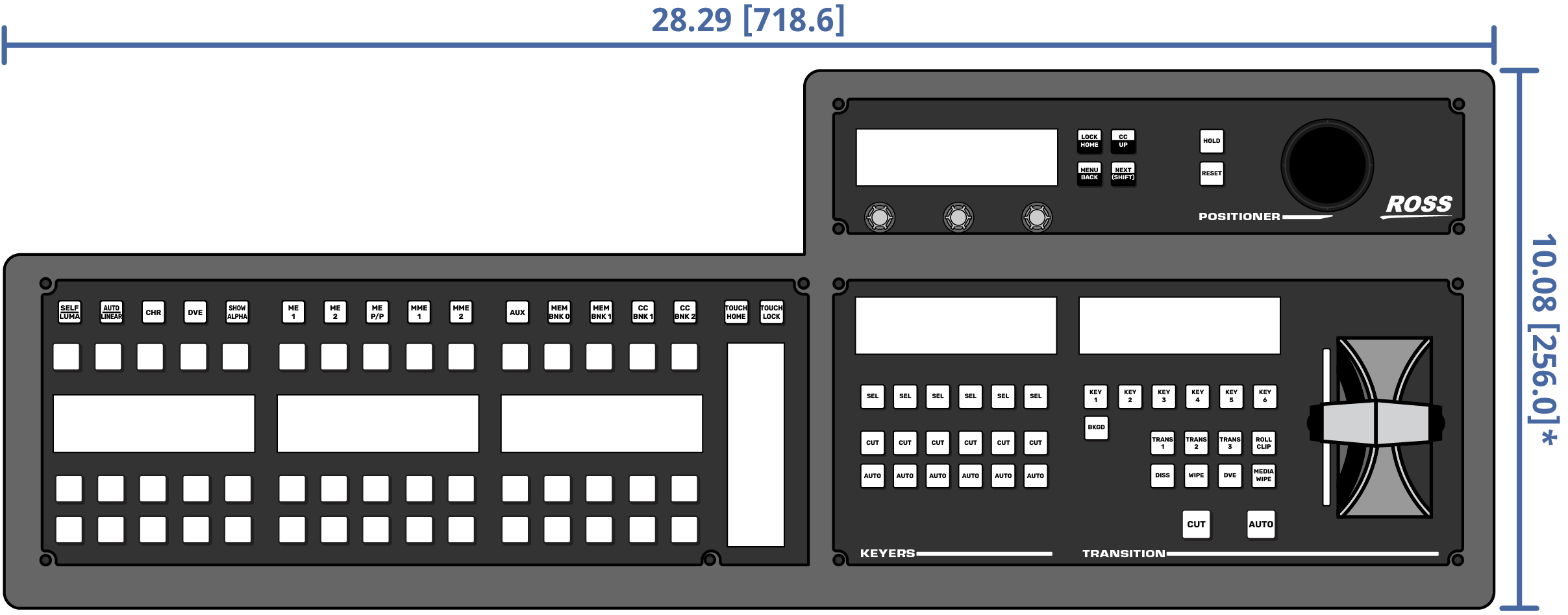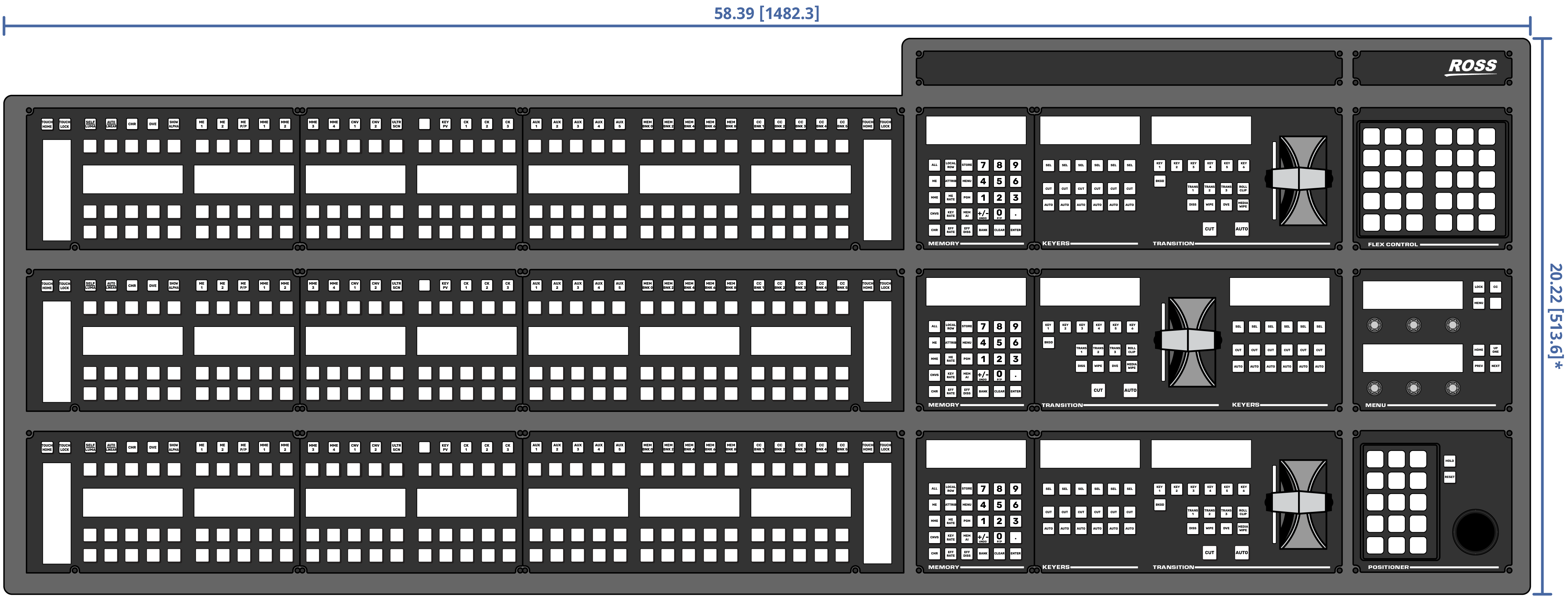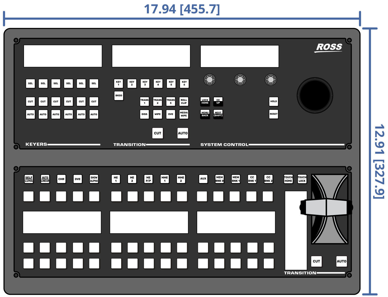 Important: These dimensions are provided as a guide only. Scale DXF/CAD drawings of the control panels are available from the Ross Video website.