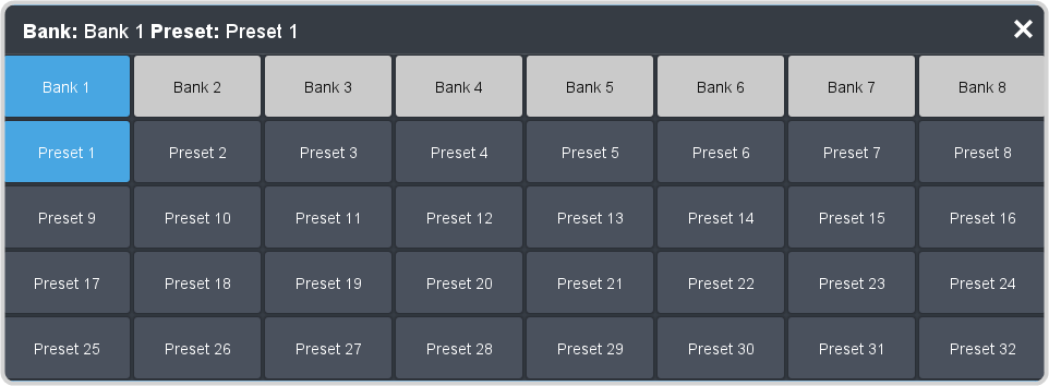 Click the Bank: X Preset: X and select the bank and preset you want to use.