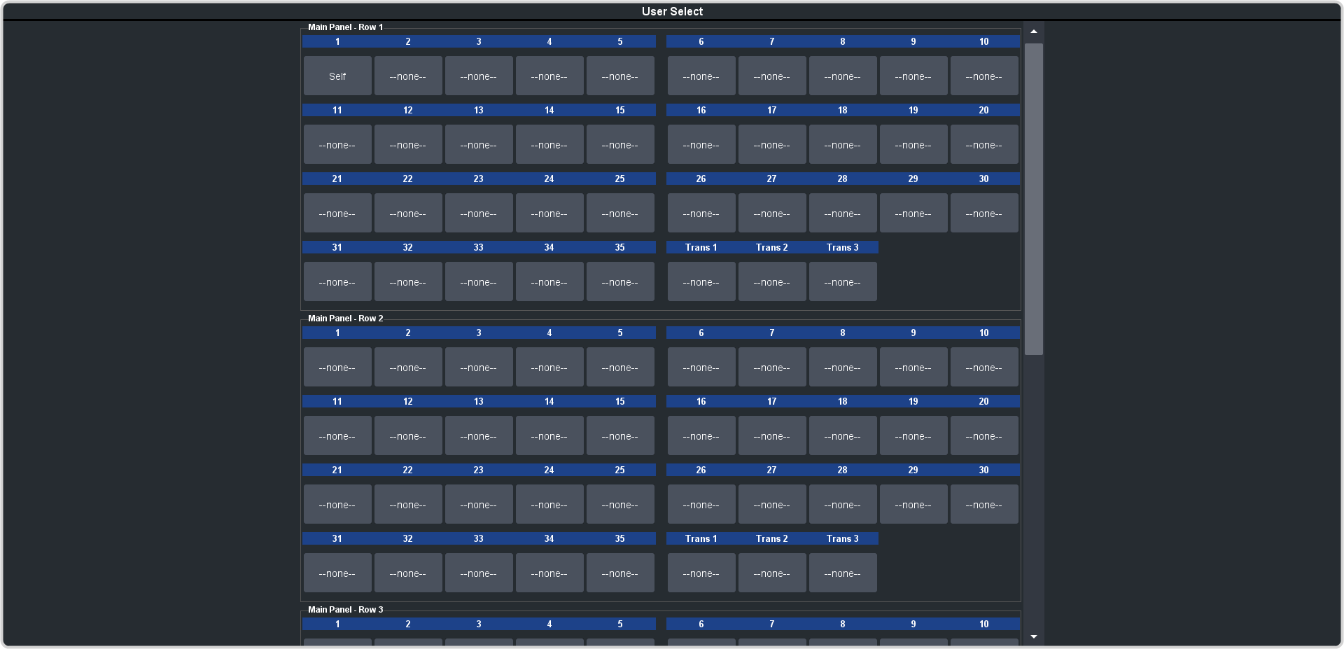 User Select and select the area you want to set up the user select buttons on. Not all control panels have the same types of modules.