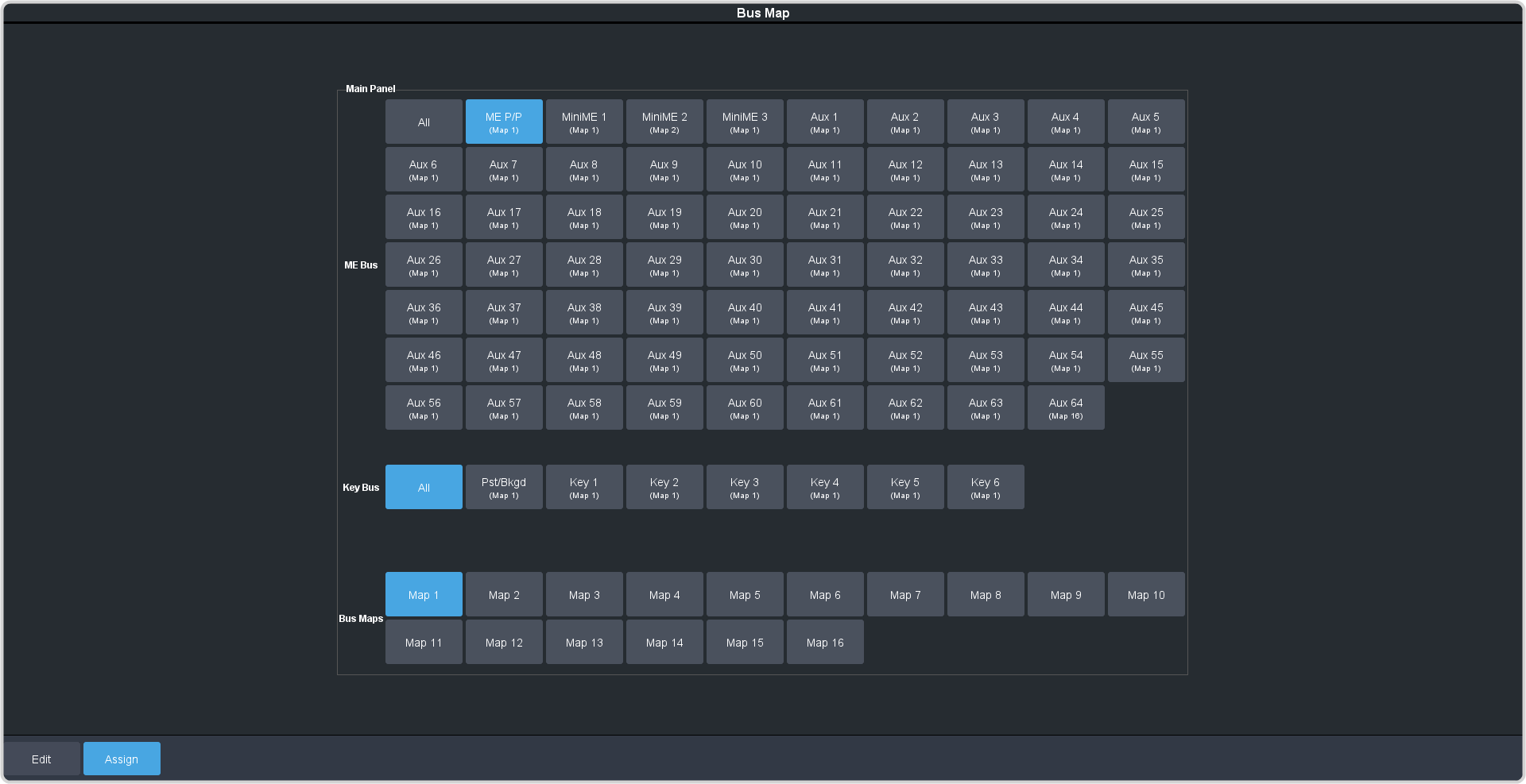 Click an ME Bus button to select the area that you want to assign a bus map to.