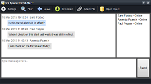 5.Click or tap Send to add the message entered in the Type message here box to the discussion. You can also send a message by pressing Ctrl Enter after entering a message in the Type message here box.