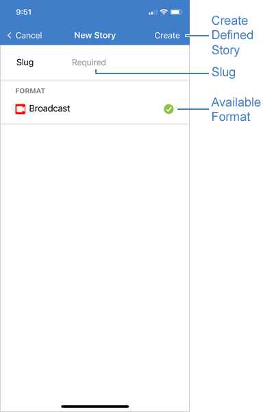 In the Slug box, enter a title for the new story. DO NOT use emojis in story slugs.